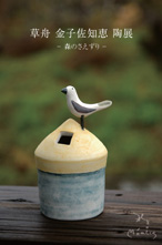 出展作家:草舟 金子佐知恵/陶,鹿児島睦/陶器,菊池絢女/ペーパークラフト,Quir/革小物,栗八工房舎/粘土人形,シバタナツキ/陶,スミレ研究所 金井三和/陶,sono/テキスタイル,高見沢美穂/陶,happa do/オーナメント buanobi/刺繍小物 boky/テキスタイル,森重裕子/布雑貨 山田亜衣/銅、真鍮
